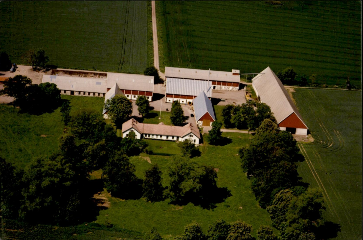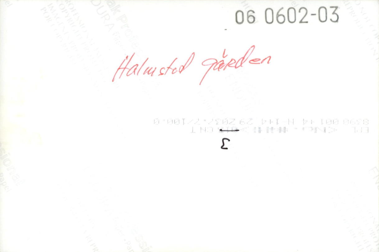 79. HALMSTAD GÅRD Omfattade 1910 beteckningarna på kartan: Halmstad 7, 9 d, 12 e, 13, 14 f, samt 1 b Halmstadlund som består av jordeboksnummer Halmstadlund 1, 5/16 mtl skatte, den enda del av Halmstads församling som varit skattejord, och Halmstadlund 2, 1/4 mtl frälse samt Stolparp 1 innehållande tillsammans 353,1 hektar därav 333,6 har åker och trädgård 0,5 har park och äng 5,4 har skogs- hag - och betesmark 1,4 har impedimenter 9,3 har tomter och vägar och 2,9 vatten. Halmstadlund har varit egen gård som köpts till det övriga. Enligt uppgift skall det ha funnits ett mejeri på Halmstadlunds mark längst ned mot Tarstadsgränsen. I den norra flygeln av huvudbyggnaden på Halmstadgården har senare också varit mejeri. De olika åkrarna har sina särskilda namn såsom den söder om Brödåkravägen, mot Tarstad som kallas smedjevången väster om samma väg är sjövången och ännu längre väster ut ligger kasernbacken. Till höger om uppfartsvägen från väster är Stolparpsvången till vänster ligger byavången nordost om gården är kransavången och öster ut ligger ängarna. På Halmstadlund finnes horsavången och bångavången med skinnarpskrogen där möjligen den lilla gården Skinderup kan ha varit belägen, den som kyrkoherden i Halmstad Hans Gudmandsen Sascerides 1630 ville ha avkastningen av. Halmstadgården omtalas redan på 1400 talet då den innehades av Knud Saxtrup, vars gravhäll ligger som trappsten framför kyrkodörren*. Fabian Månsson påstår i en av sina skrifter att Knud Saxtrups hustru Birgitta Pederadotter skulle vara brordotter till den ökände fogden Jösse Eriksson på Västeråshus. Halmstad-gården brukades som utgård till Dufeke säteri under 1860 och —70 talet under ledning av Inspektor S. Bengtsson fram till 1865 då han avled. Han efterträddes av Insp. N. Nilsson som 1875 blev förflyttad till Loarp. Insp. 0. Fjellström efterträdde och 1877 blev Halmstadgården utarrenderad till Löjtnant C von Essen. Från och med 1888 nämnes Major V.G. Frick sons innehavare av Halmstadgården med G. von Essen som inspektor. År 1896 har Dufeke gods själv övertagit brukningen av Halmstadgården. Inspektorer på gården: Fr. Österberg 1896-1903. E.O. Sjöström 1904 -1910. J. Westerlund 1911-12. R. Ohlsson 1913-1942. Gunnar Bergström 1943-45. Allan Persson, g.m. Hanna, 1946-47. Cederholm omkring 1950. Arne Johansson, g.m. Birgit, 1952- 58. År 1962 såldes Halmstadgården med kringliggande gårdar av Godsägare J. Berg von Linde till Greve S. Wachtmeister på Axelvold som under namnet AB Whaxta äger Halmstadgården, *Gravhällen anses vara över en Ulfstand, dåvarande ägare till Dufeke.
